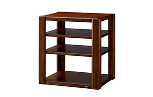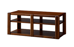高級感あふれる天然木、頑強構造。ファニチャー的感性とオーディオ的性能が、美しく融合したオーディオラック。塩ビシートや圧縮ボードを使用せず、耐荷重性が高い天然木集成材をフル使用。細部にわたる面取り加工。天底40mmの重厚感あふれる外観は至高の気品です
